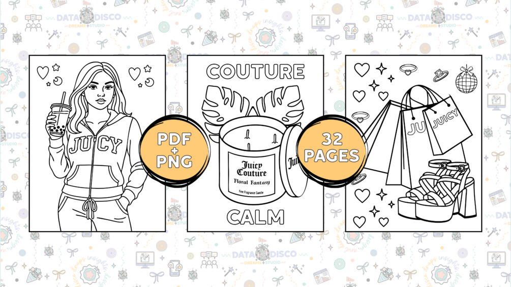 Bring a little glam into your downtime with this Juicy Couture–inspired coloring book! Perfect for anyone who loves fashion, beauty, travel, and self-care vibes, this stylish adult coloring book is designed to be both fun and fabulous.
